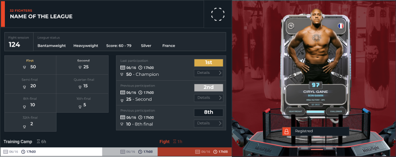 League in Championship & Starter Arenas require a specified number of points to enter, so registering a Fighter in a League will cost the number of points specified in each League,