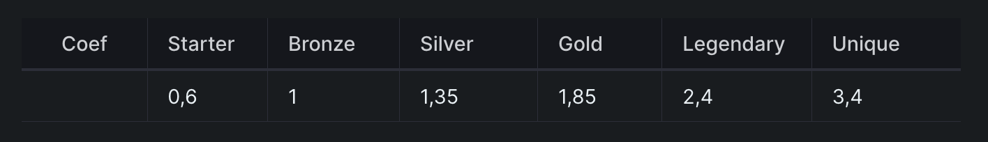 * The rarity coefficient in play for fight outcome are now as per table below.
