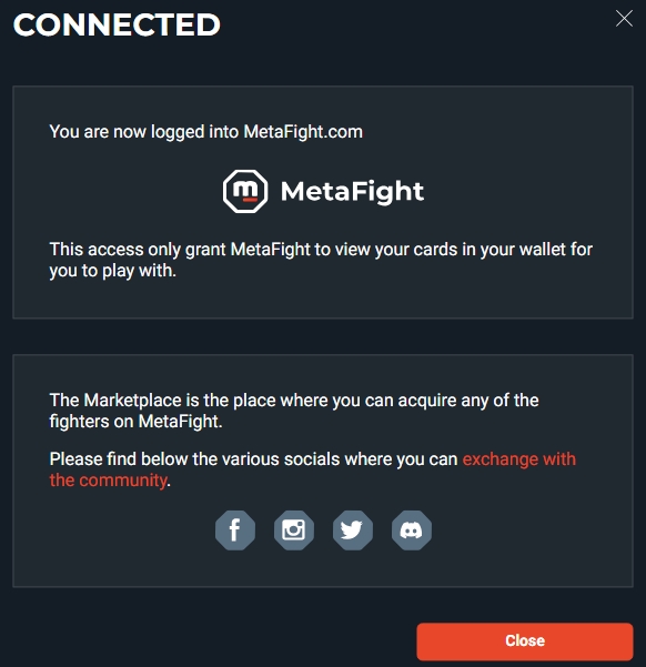 Congratulations! You're now logged into MetaFight