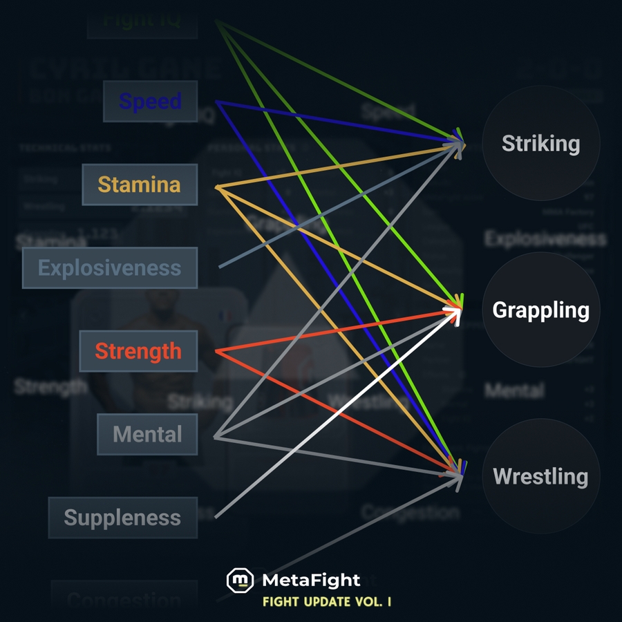 Technical stats: Striking, Wrestling, and Grappling.